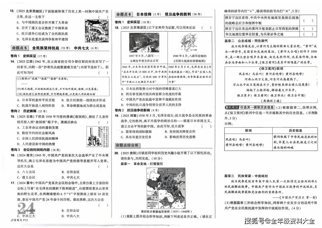 26版《万唯中考真题分类》历史-96页(摸底小卷+答案+开放性设问答题模板+核心知识记背)