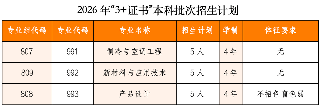 顺职大“3+证书”考试本科批次招生录取专业为制冷与空调工程、新材料与应用技术产品设计,共招生15人。