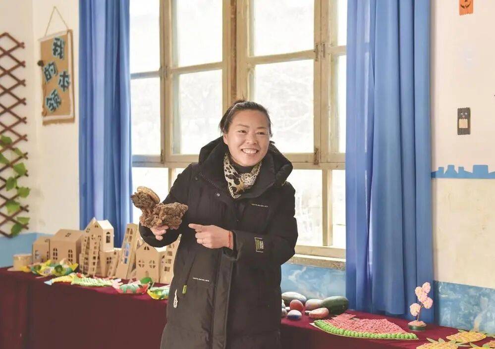 枯燥的课堂,也被她盘活出别样乐趣。讲解《秋天》时,她带着孩子们走进田间,摸稻穗、捡落叶,让孩子们在实景里读懂文字间的秋意;她还和孩子们一起用废弃物做教具、做手工,憨态可掬的石头小动物、色彩鲜亮的彩纸挂画,把教室装扮得焕然一新,既盛满师生温情,也藏着对生活的热忱。