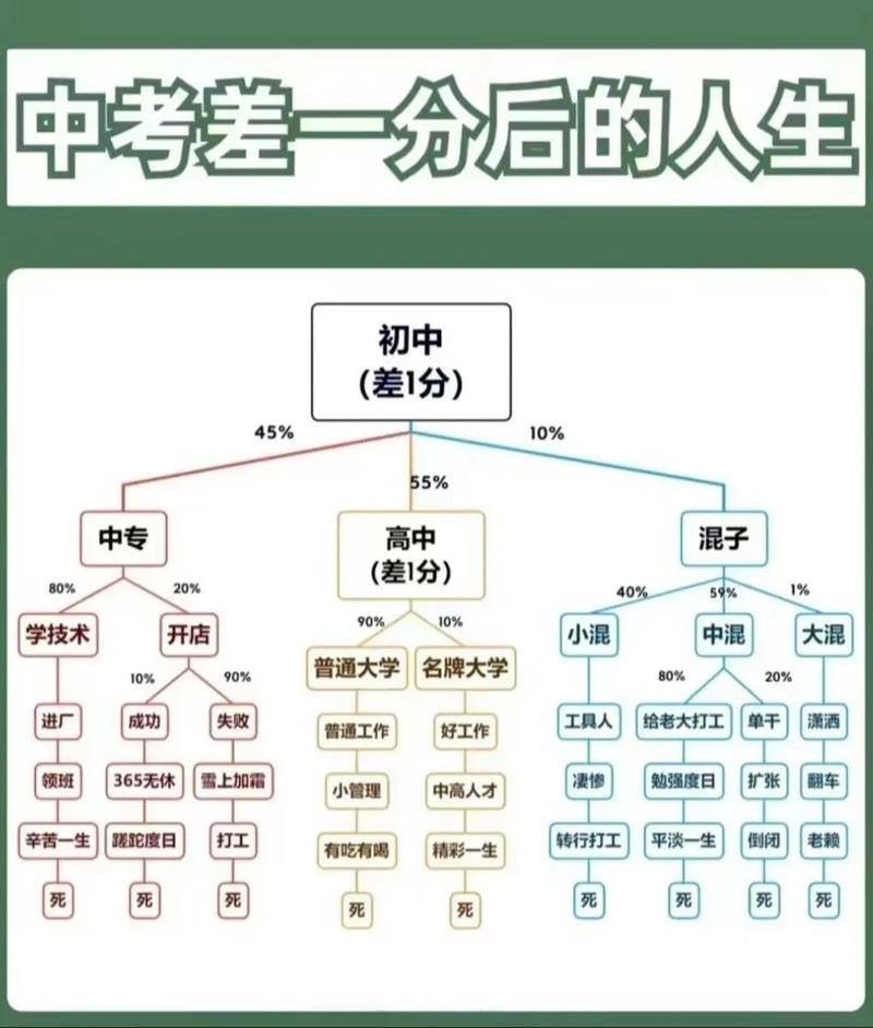 如果孩子成绩稳居前50%,可以冲刺普高;如果成绩在边缘,家长要客观评估。