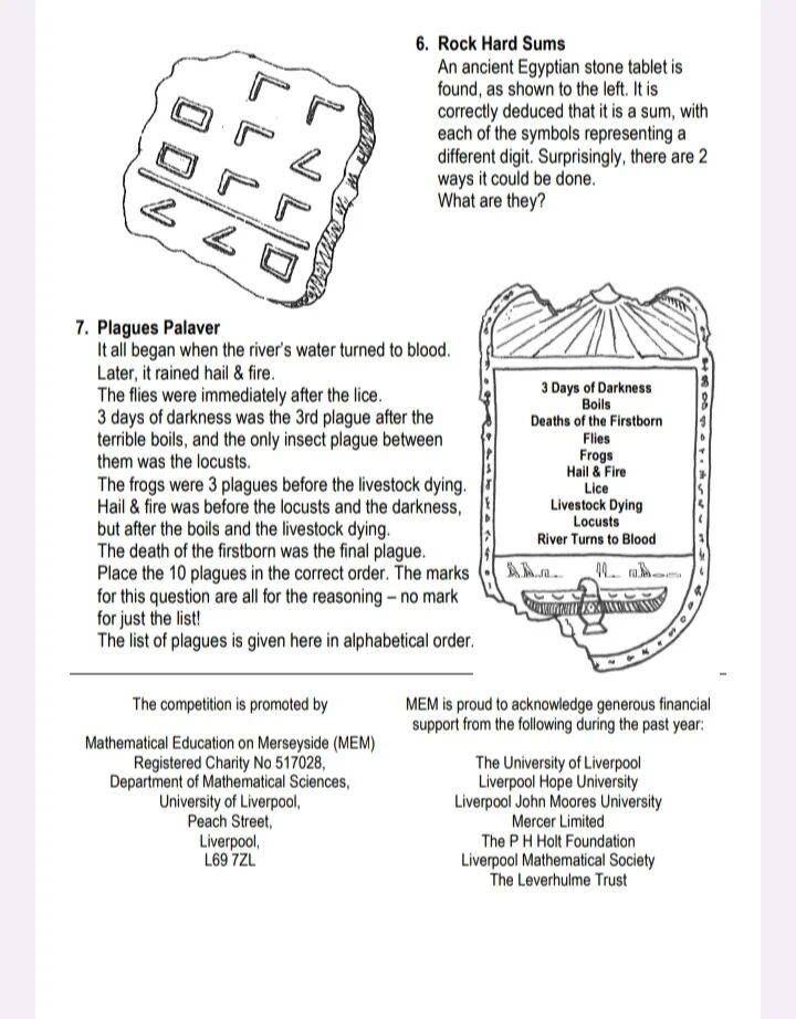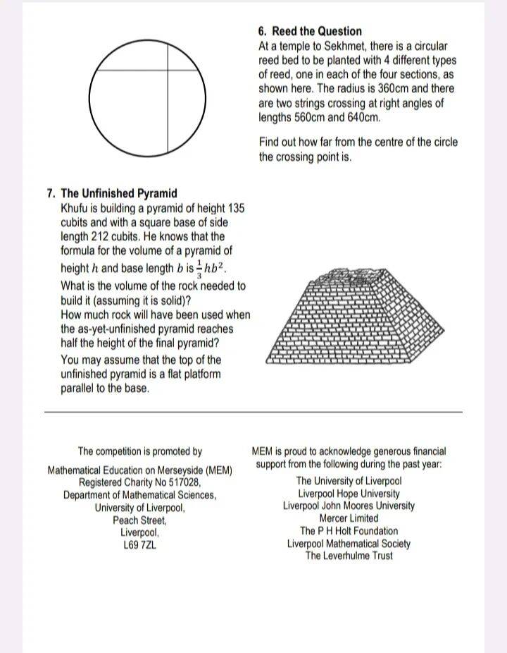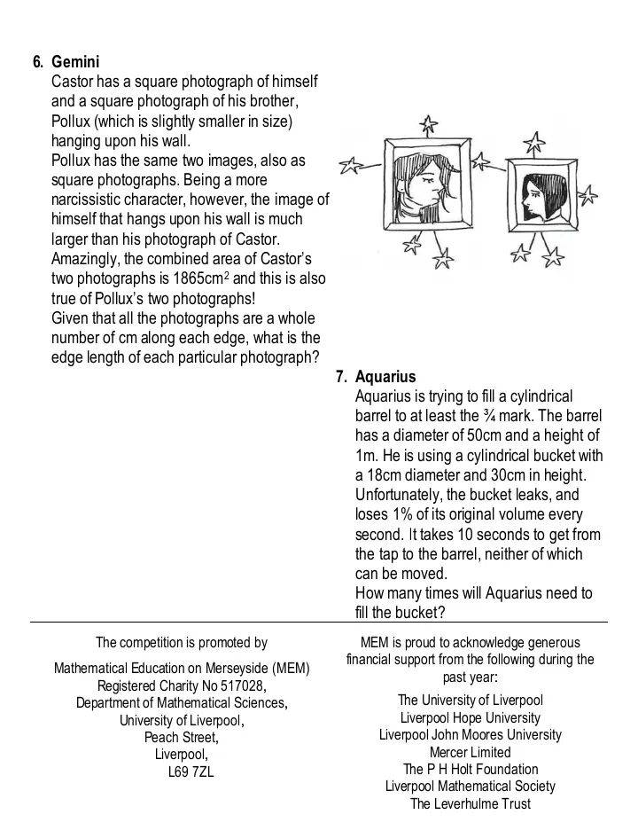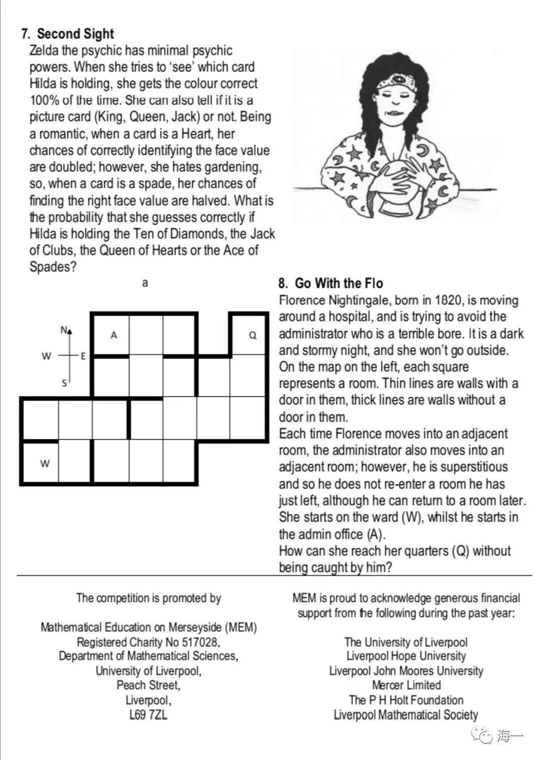 Mathematical Education on Merseyside (MEM) 墨西赛德郡数学竞赛每年2月举办。