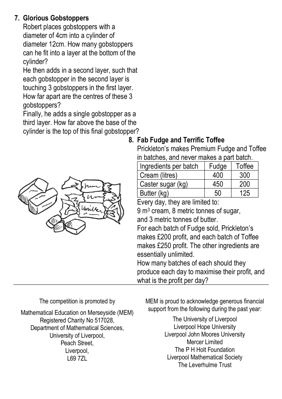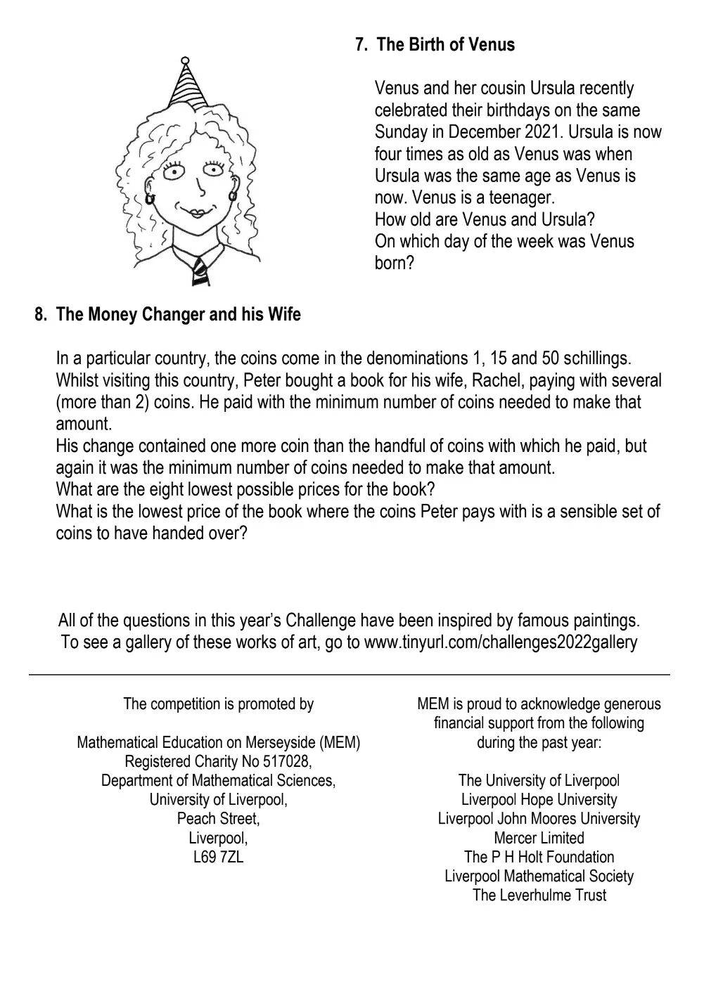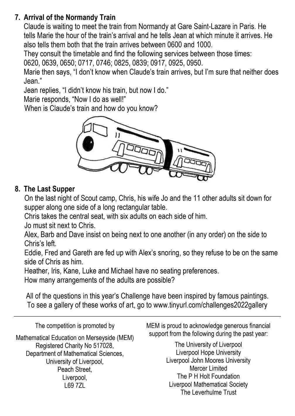 Mathematical Education on Merseyside (MEM) 墨西赛德郡数学竞赛每年2月举办。