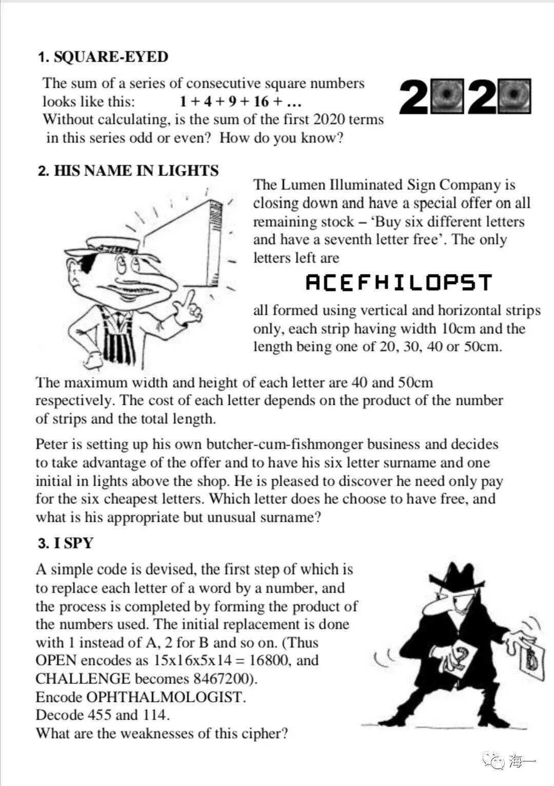 这个比赛已经有四十多年的历史,分Junior(8年级及以下)组,Senior(10年级及以下)组和Open Challenge(13年级及以下组)。今天和大家分享下竞赛题目。