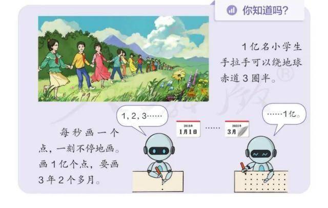 这幅插画出自某本小学数学教材里的一个章节,被用在教材“编者的话”部分,和一个新奇小知识上。