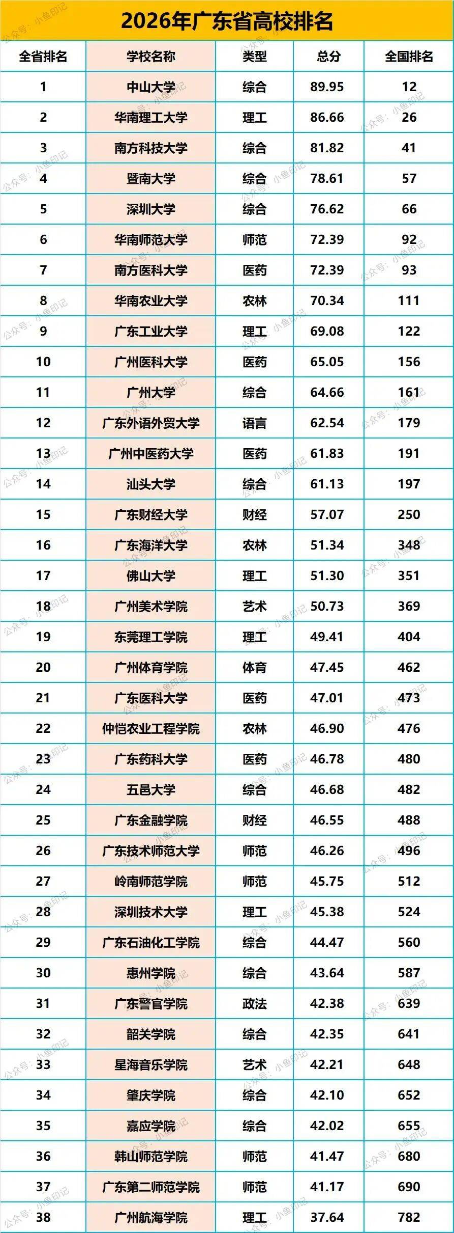 为了也让大家更好的理解广东省高校具体的实力情况,避免2026年高考阶段盲目报考,今天小鱼老师就带大家来看一下广东省高校的最新排名情况。