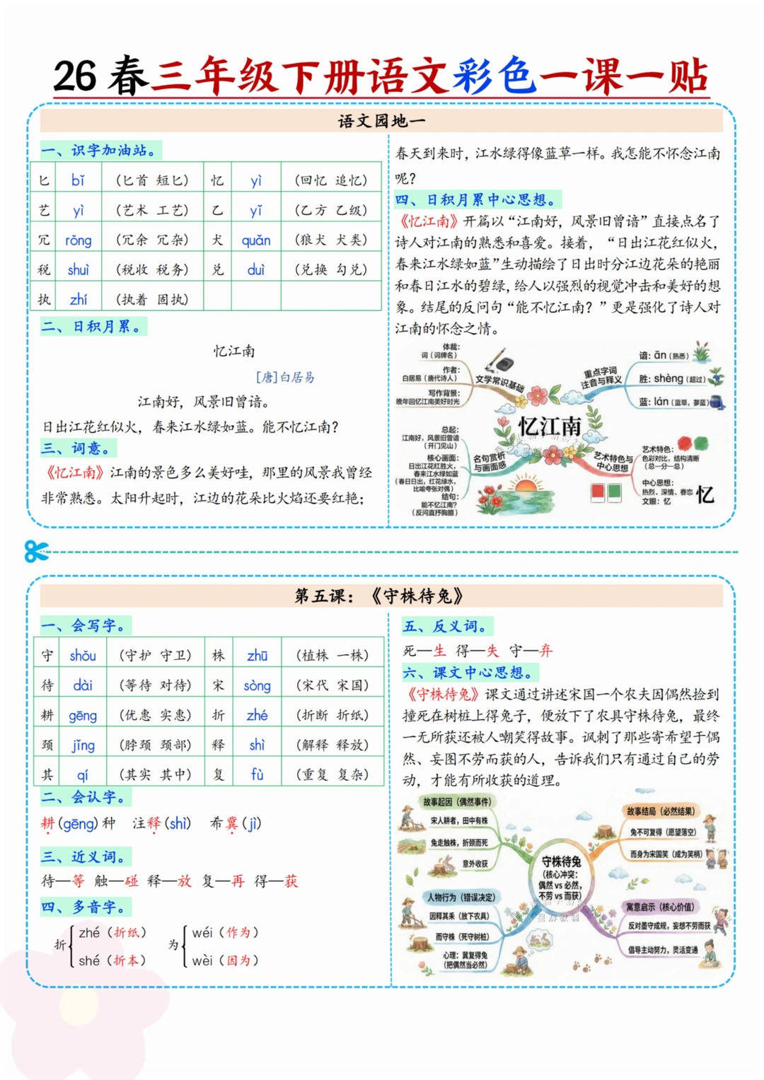 26春三年级下册语文一课一贴重点考点整理(电子版可打印)