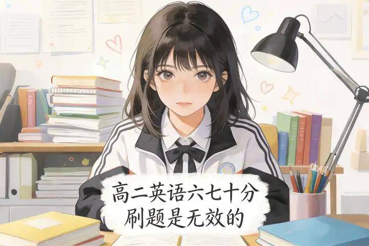 高二下半学期,英语成绩只有六七十分,不要认为进入高三还是六七十分,一般这个分数段的同学进入高三以后,分数会掉到四五十分水平。属于0~80分的零基础分数段,这个分数段刷题是没有作用的,相当于把时间浪费在猜答案上,必须要先背单词。