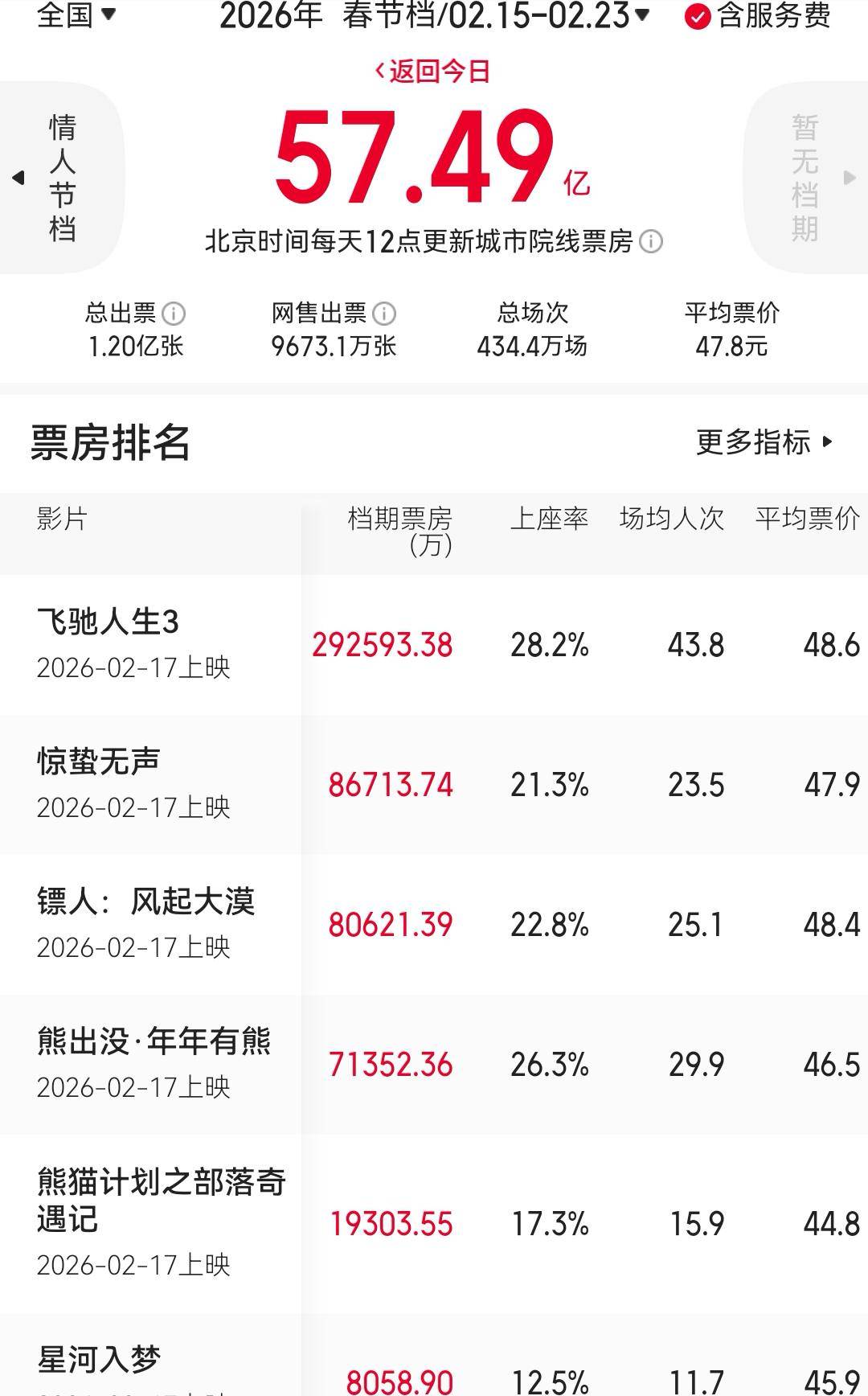 春节档57.5亿收官同比跌40% 《飞驰人生3》贡献51%票房