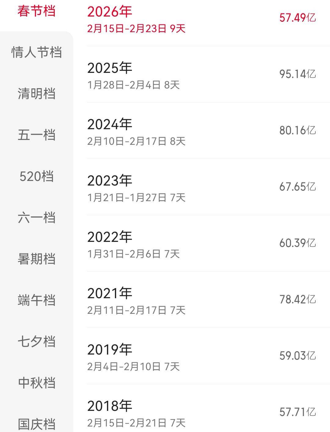 如果说去年有超级爆款《哪吒2》,是个意外,没法比。那跟2018-2024年比,2026年春节档也是最差的。