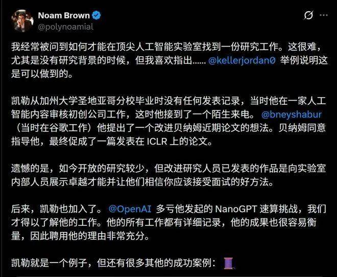 Keller不是个例,Noam Brown还列举了另外两位同样逆袭的年轻人,证明这套路径完全可复制。