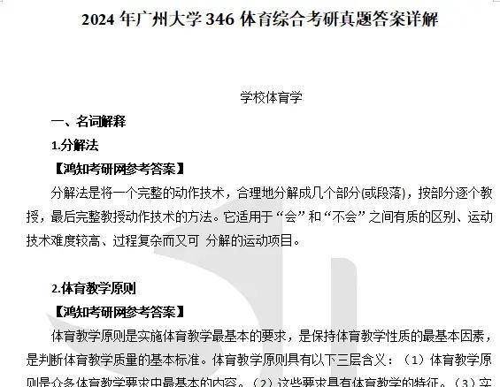 2024年广州大学346体育综合考研真题答案详解(回忆版)