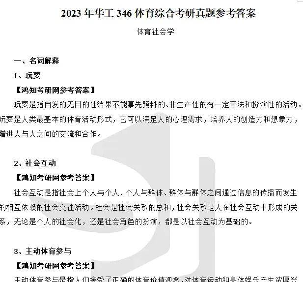 2024年华南理工大学346体育综合考研真题答案详解