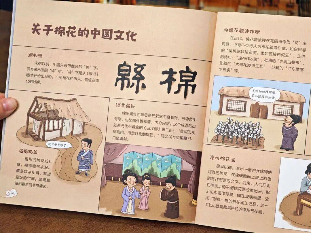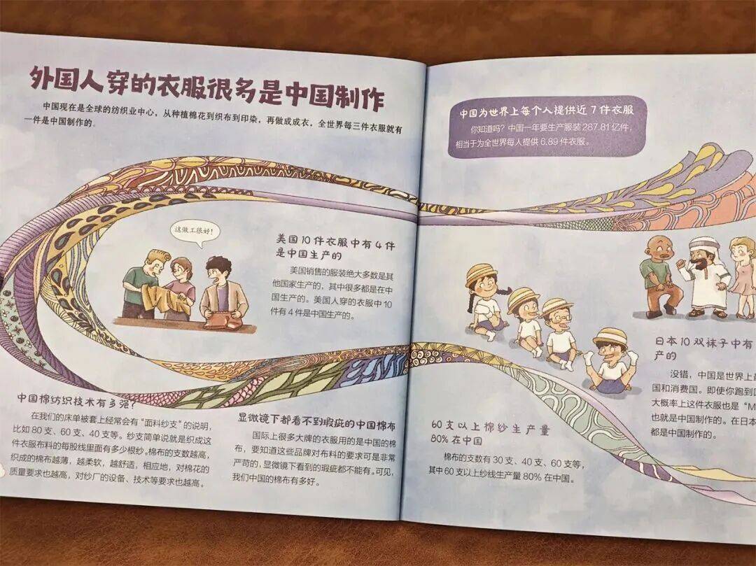 书中就把种植、采摘、制成衣裳的全过程,都像连环画一样展示给孩子。