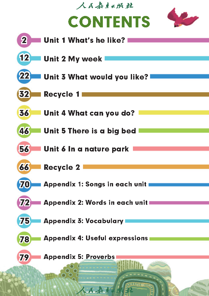 2026 秋人教 PEP 版五年级英语上册新教材共 6 个新授单元 + 1 个复习单元,围绕人物、作息、饮食、能力、家居、自然六大主题展开,系统学习外貌性格、星期活动、食物喜好、才艺能力、房间物品、自然景物等核心内容,重点掌握 can 句型、there be 句型、频度副词、不可数名词与方位描述,是小学英语语法与读写能力提升的关键一册,适合预习、单元复习与期末备考。
