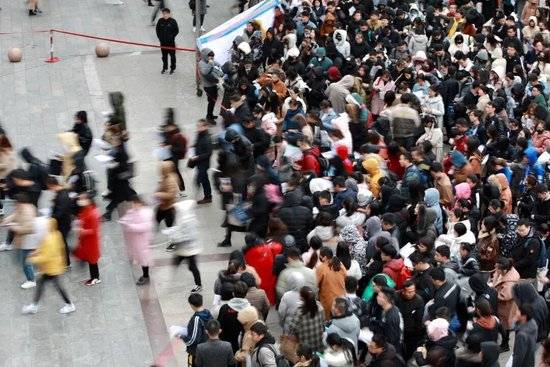 某国考考点,警戒线解除后考生大量涌入考场,大有“千军万马过独木桥”之势/图源:视觉中国