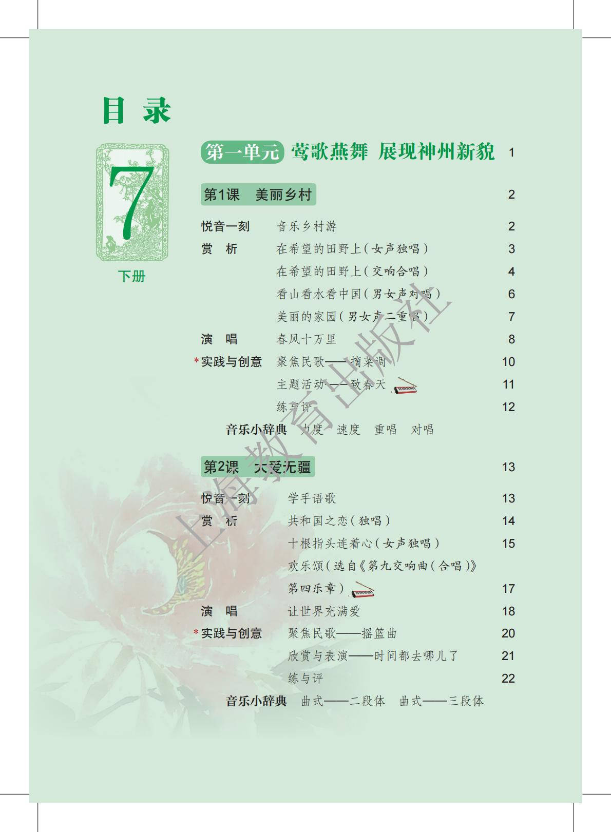 2026沪教版七年级音乐下册电子课本(新教材高清PDF版)就为您介绍到这里,资源来源于网络,仅为学习交流之目的进行分享,其版权均归原出版社及作者所有。