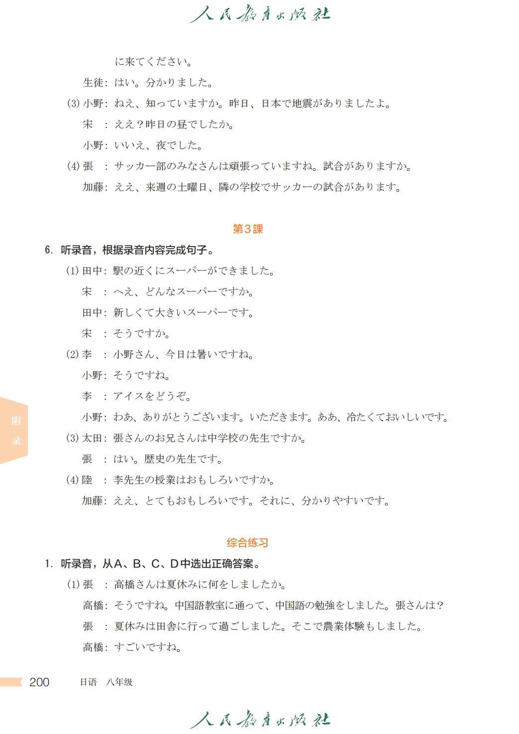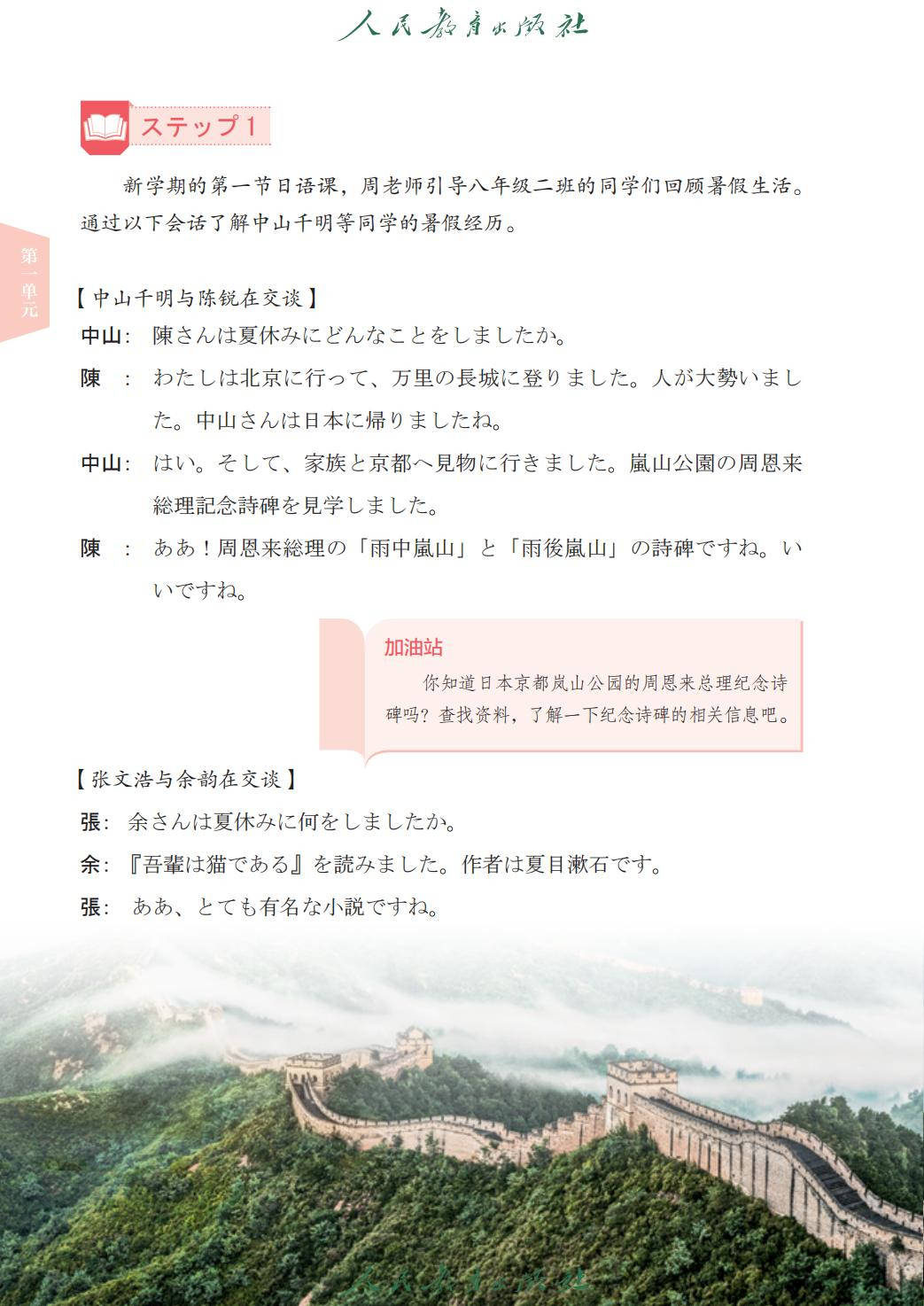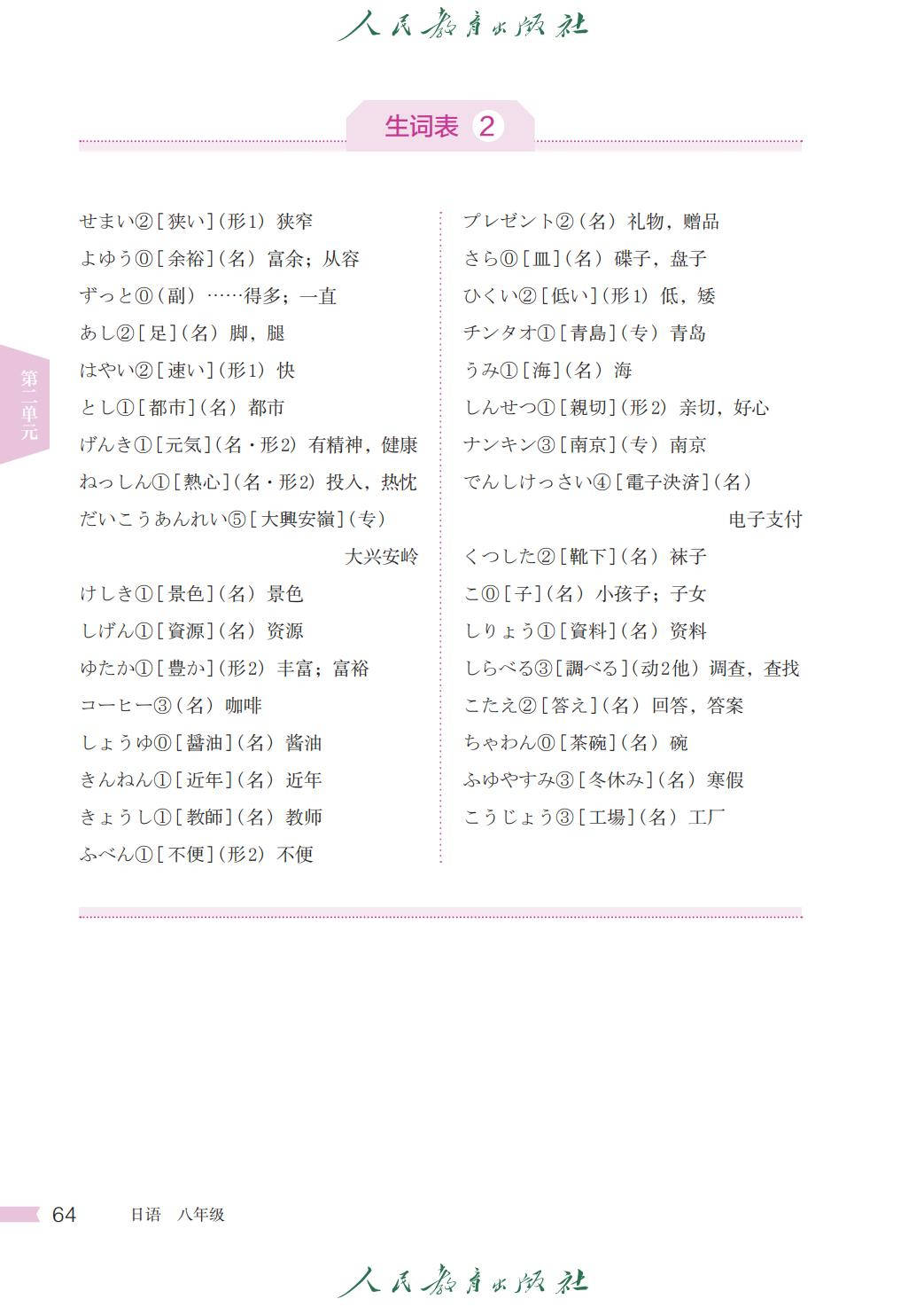 2026人教版八年级日语全一册电子课本(新教材高清PDF版)就为您介绍到这里,资源来源于网络,仅为学习交流之目的进行分享,其版权均归原出版社及作者所有。