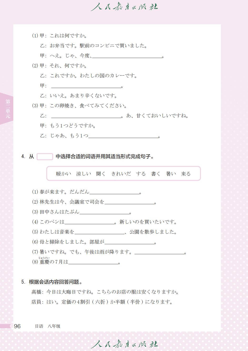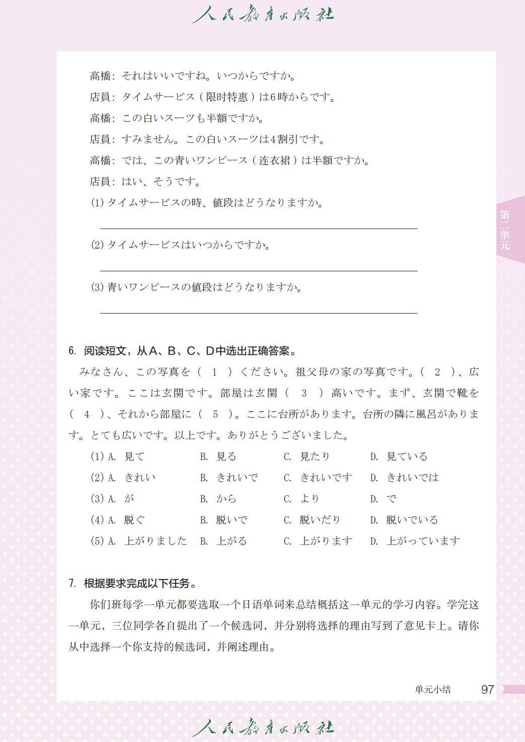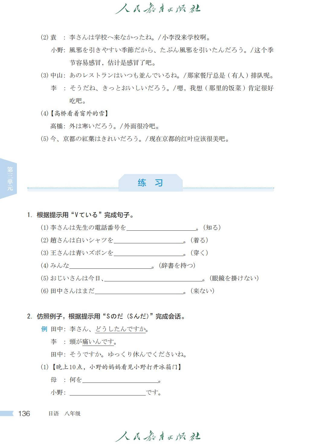 2026人教版八年级日语全一册电子课本(新教材高清PDF版)就为您介绍到这里,资源来源于网络,仅为学习交流之目的进行分享,其版权均归原出版社及作者所有。