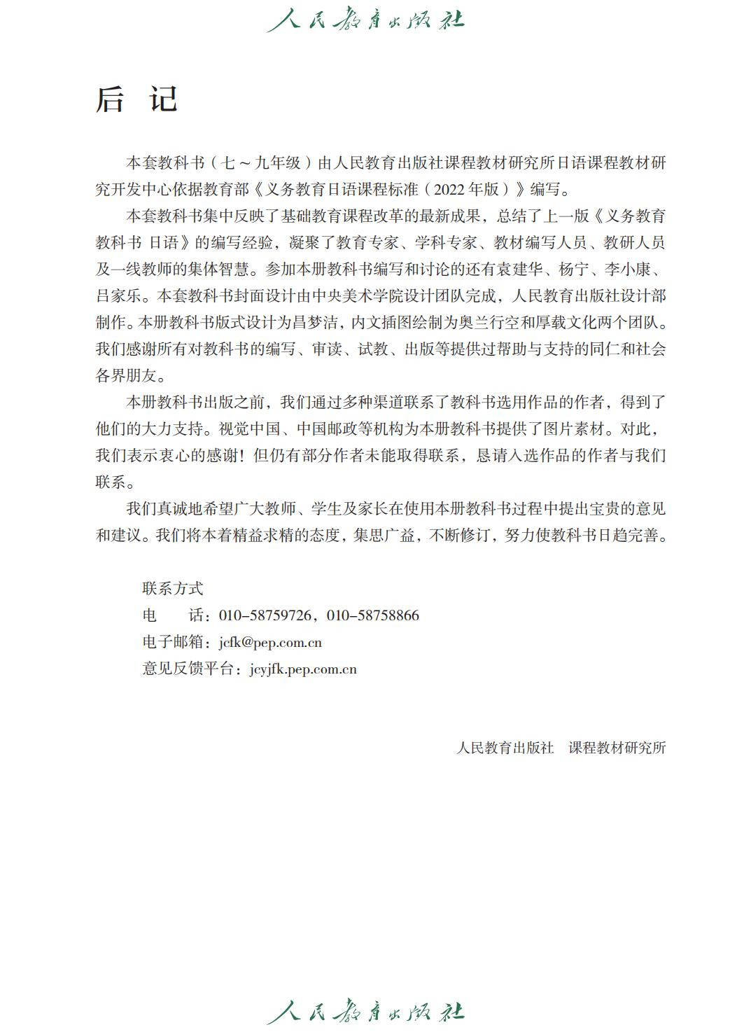 2026人教版七年级日语全一册电子课本(新教材高清PDF版)就为您介绍到这里,资源来源于网络,仅为学习交流之目的进行分享,其版权均归原出版社及作者所有。