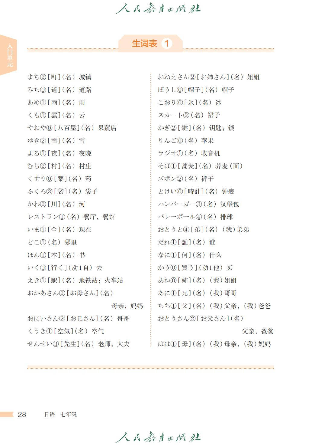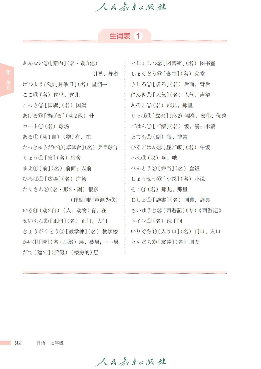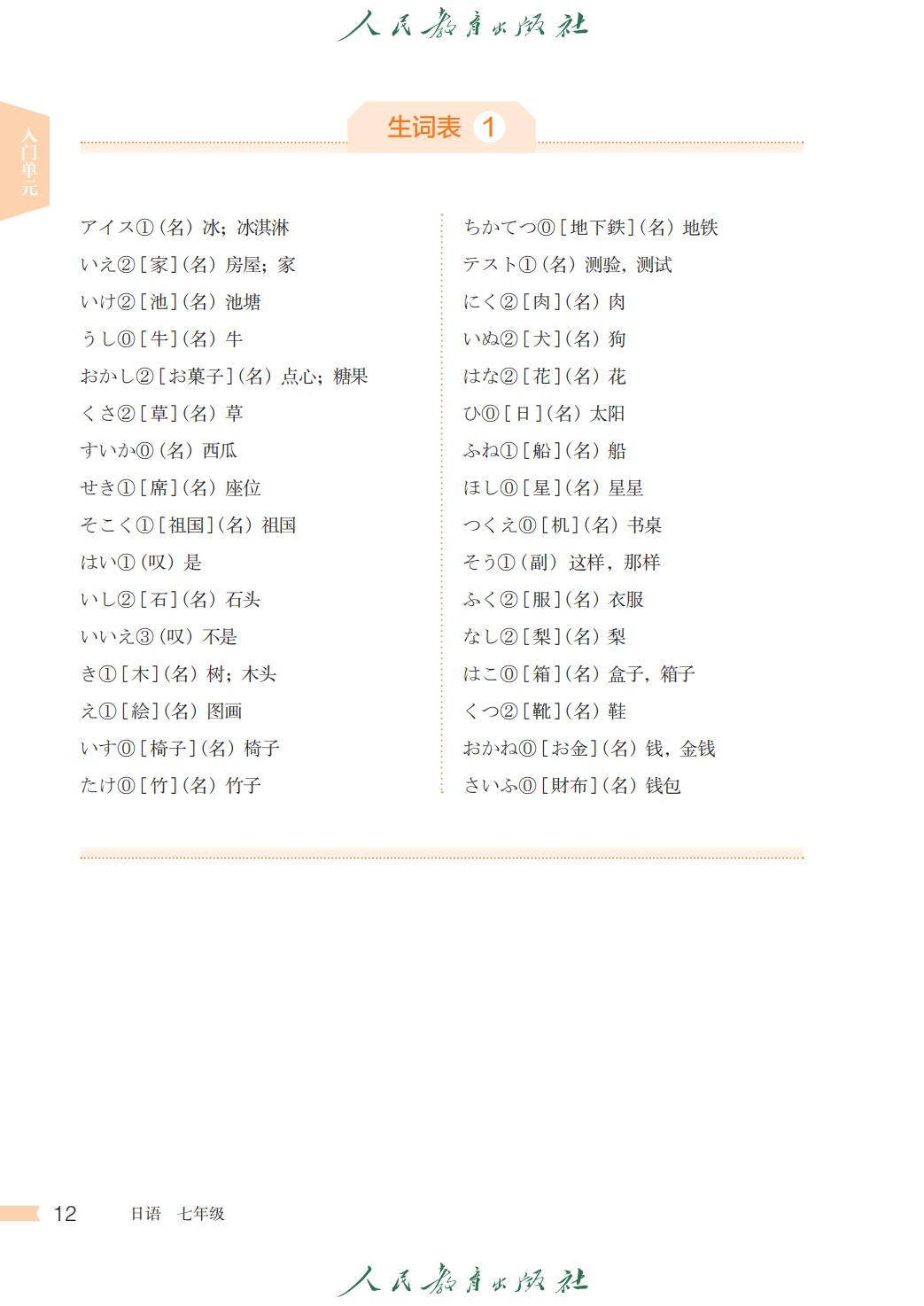 人教版七年级日语全一册电子课本图片版在线阅读