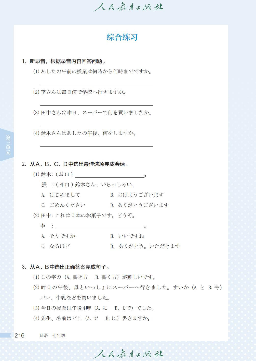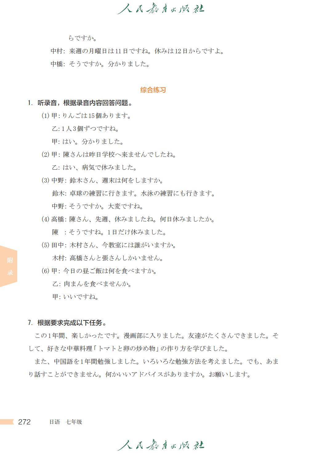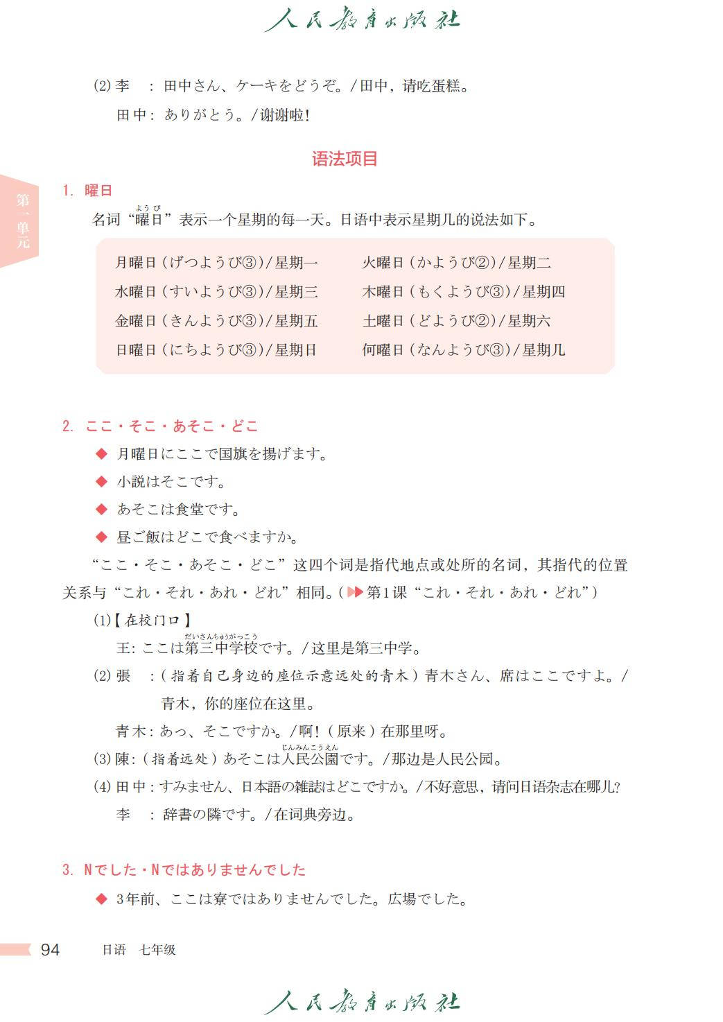 人教版七年级日语全一册电子课本图片版在线阅读