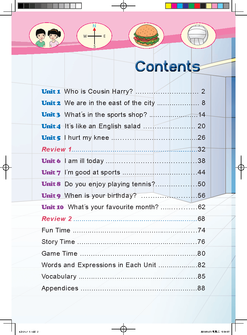 ?2026秋鲁教湘教版六年级英语上册,小升初衔接关键册!全册共10个单元(含2个复习单元),逐单元知识点清晰,贴合考点,孩子预习复习不盲目? Unit1(Who is Cousin Harry?):核心讲亲属相关,掌握亲戚类词汇,重点句型Who is...? ,巩固物主代词用法;Unit2(We are in the east of the city.):聚焦城市方位,学会east/west等方位词,熟练运用问路、指路句型,掌握方位介词;Unit3(What's in the sports shop?):围绕运动用品展开,积累体育类词汇,学会询问物品及表达物品所在;Unit4(It's like an English salad.):涉及饮食相关,掌握食物词汇,能描述食物特点、表达饮食喜好;Unit5(I hurt my knee.)+Unit6(I am ill today.):围绕健康展开,积累身体部位、疾病类词汇,学会表达身体不适、寻求帮助;Unit7(I'm good at sports.)+Unit8(Do you enjoy playing tennis?):聚焦运动爱好,掌握运动类词汇,句型I'm good at...、Do you enjoy...? ,巩固一般现在时;Unit9(When is your birthday?)+Unit10(What's your favourite month?):关于生日和月份,掌握月份、日期表达,学会询问和回答生日时间。全册重点巩固一般现在时、第三人称单数、情态动词,强化阅读和短篇写作,为小升初打底子,家长可直接对照督促孩子背诵掌握。