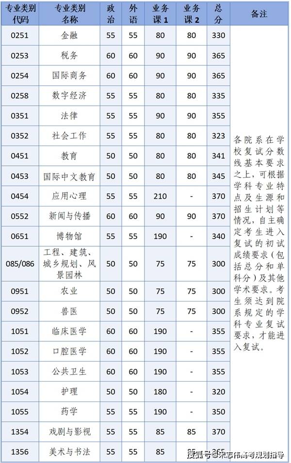 1. 医学院护理专业学位类别考生,满分为100分的科目成绩不低于50分,满分为300分的科目成绩不低于150分,总分成绩不低于320分。