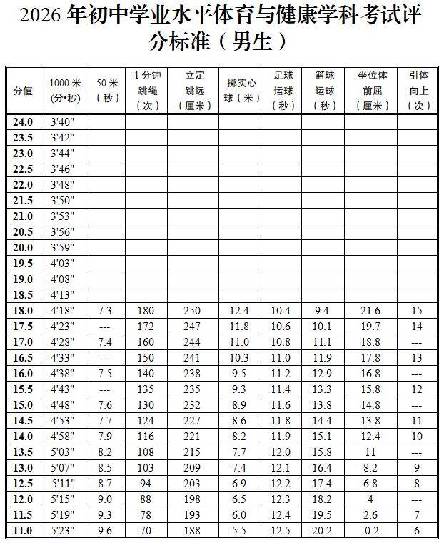 2月25日,记者从市教育局获悉,我市2026年初中学业水平体育与健康学科考试(以下简称“中考体育考试”)方案出炉。