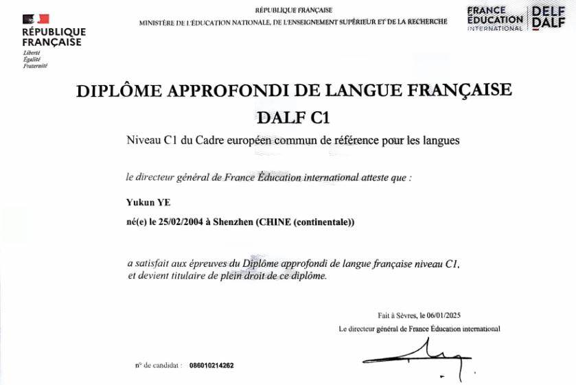 叶雨坤向学弟学妹分享DELF法语学习经验