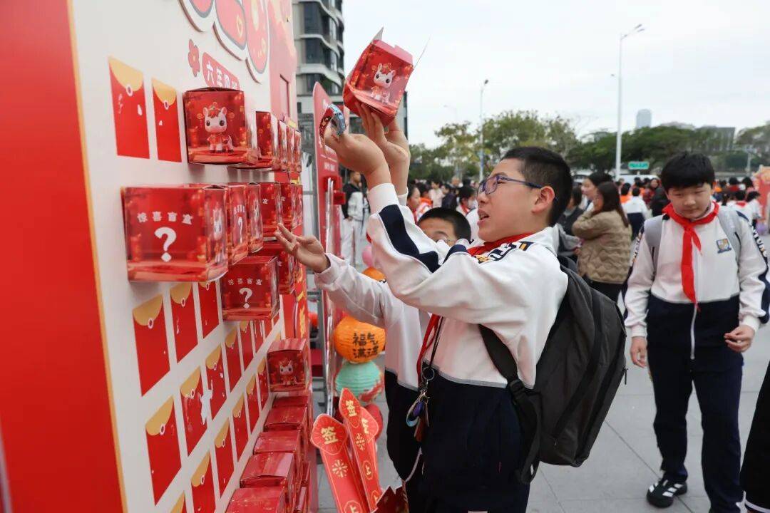 禾山学子们在满满的仪式感中迎来新学期:校门口设置萌趣迎宾装置、许愿桶前同学们郑重投入期许卡片、灯谜阵里大家开动脑筋争相竞答,红包墙上抽取的五育积分更添惊喜。孩子们洋溢的笑脸,恰似春日暖阳,成为校园里最美的风景。