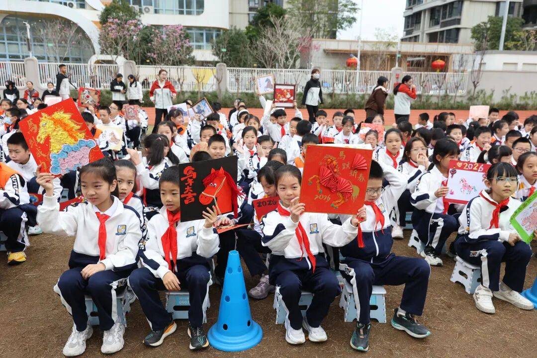 学校举行以“骐骥驰骋 势不可挡”为主题的2026年春季开学仪式。学校将马年传统文化与新时代德育工作有机融合,通过文化展示、互动体验、暖心仪式等形式,为全体师生带来一堂富有仪式感与教育意义的“开学第一课”,激励学生以昂扬向上的精神风貌开启新学期。校门口的《骐骥驰骋报》互动展板成为亮丽风景,围绕骐骥新航标、骐骥心灵站、吉祥物图鉴、新学期活动榜等内容,展示“十五五 规划引领下的新学期发展目标,解读吉祥物文化内涵,让学生在沉浸式体验中感悟奋进精神,凝聚成长力量。