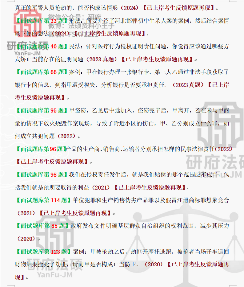 北京师范大学法律硕士专业课口试案例真题题库(14年-25年:合计150题;累计12年真题汇编)