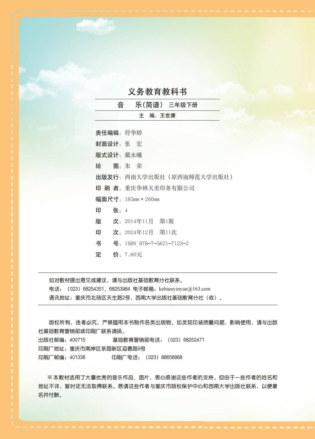 2026西南大学版三年级音乐下册电子课本(PDF版高清新教材)就为您介绍到这里,资源来源于网络,仅为学习交流之目的进行分享,其版权均归原出版社及作者所有。