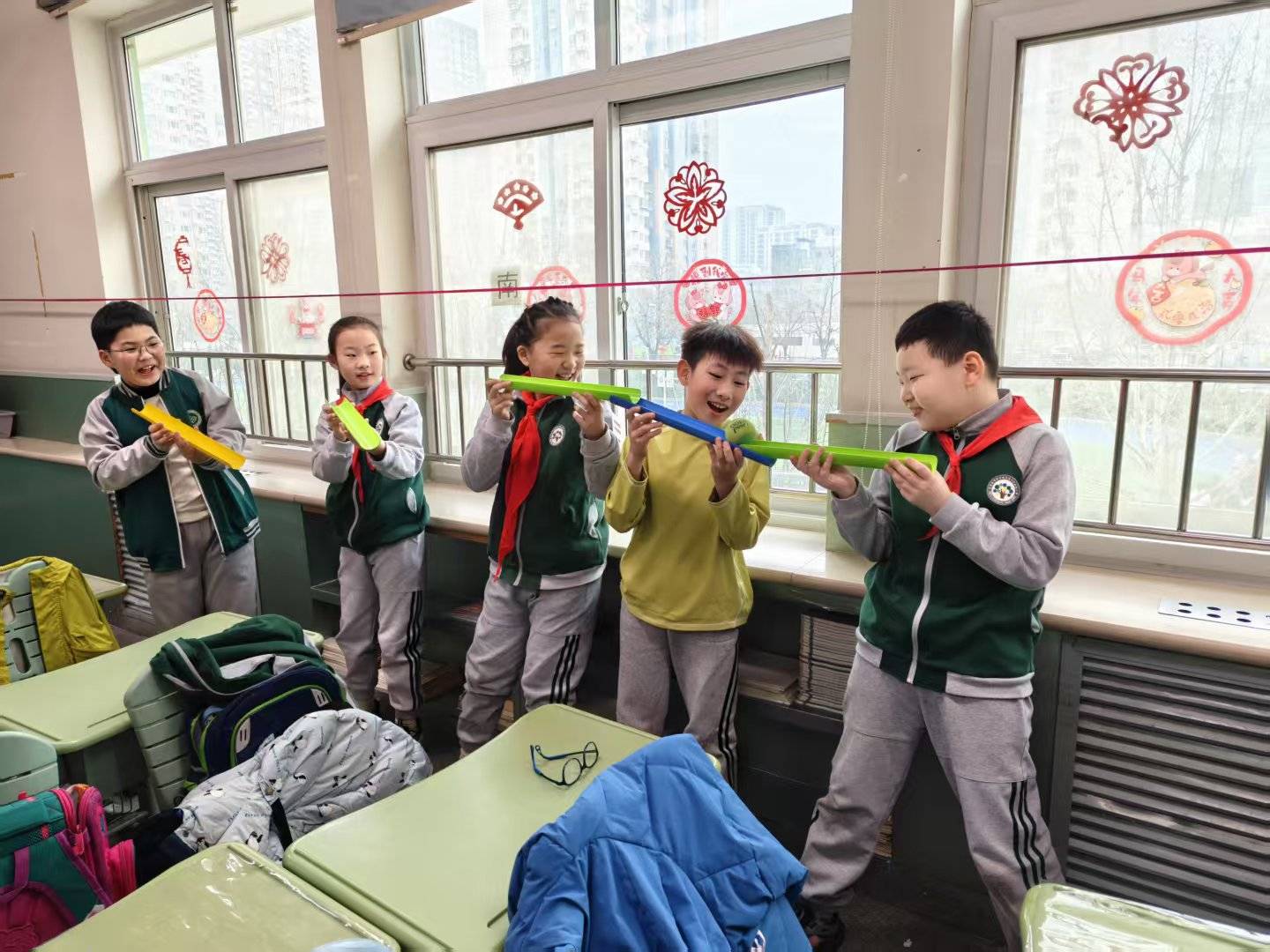 “2”即上、下午各一次特色课间操,上午开展广播体操、武术操、体适能操三位一体综合练习,强化力量、柔韧、协调、耐力等核心素养;下午进行教师自编操、趣味体适能活动、团队互动游戏,在动静交替中提升体能、愉悦身心,让每一次课间都成为高质量运动时光。