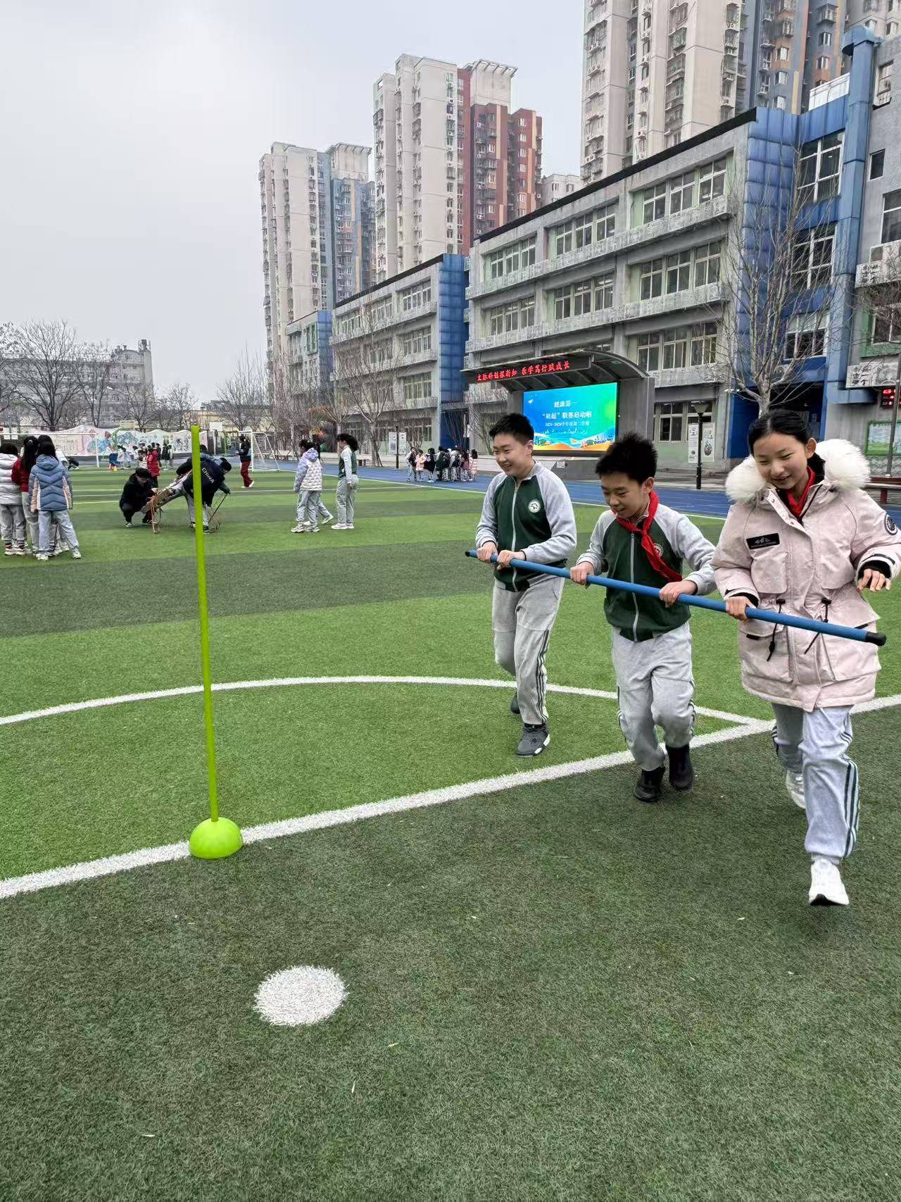 队员们步调统一、节奏一致,绕杆时如旋风般快速又稳健,全程无人松手、无人掉队。同学们们用默契与速度惊艳全场,为自己的小学赛场时光留下了亮眼一笔。这不仅是一场班级间的趣味赛事,更是学校落实市教委“健康第一”工作部署的开学第一行动。