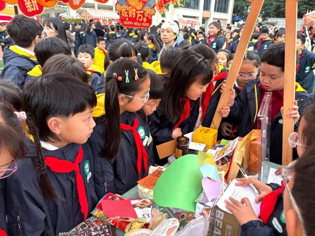 成都石室东部新区实验学校为学生定制了“石东大集”活动。校园内,钵钵鸡、糯米糍、糖葫芦等美食摊位排列整齐,节日氛围拉满。在手工区,学生们制作环保创意作品;书籍交换区里,孩子们围聚一起,讨论假期阅读的书籍。在欢快的集市里,不同学段的学生们在表达与沟通中实现协作能力的提升,课堂之外的学习在真实情境中延伸。
