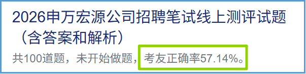申万宏源考友答2026招聘笔试真题的正确率情况,截图自吉老师小程序答题数据 编辑