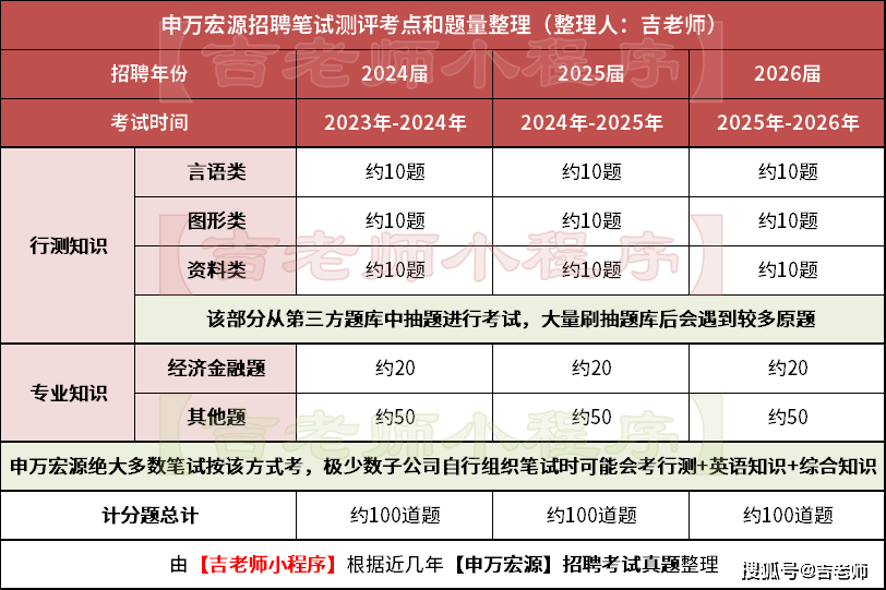 【吉老师】整理申万宏源后续校园招聘的考点和题量分布如下: