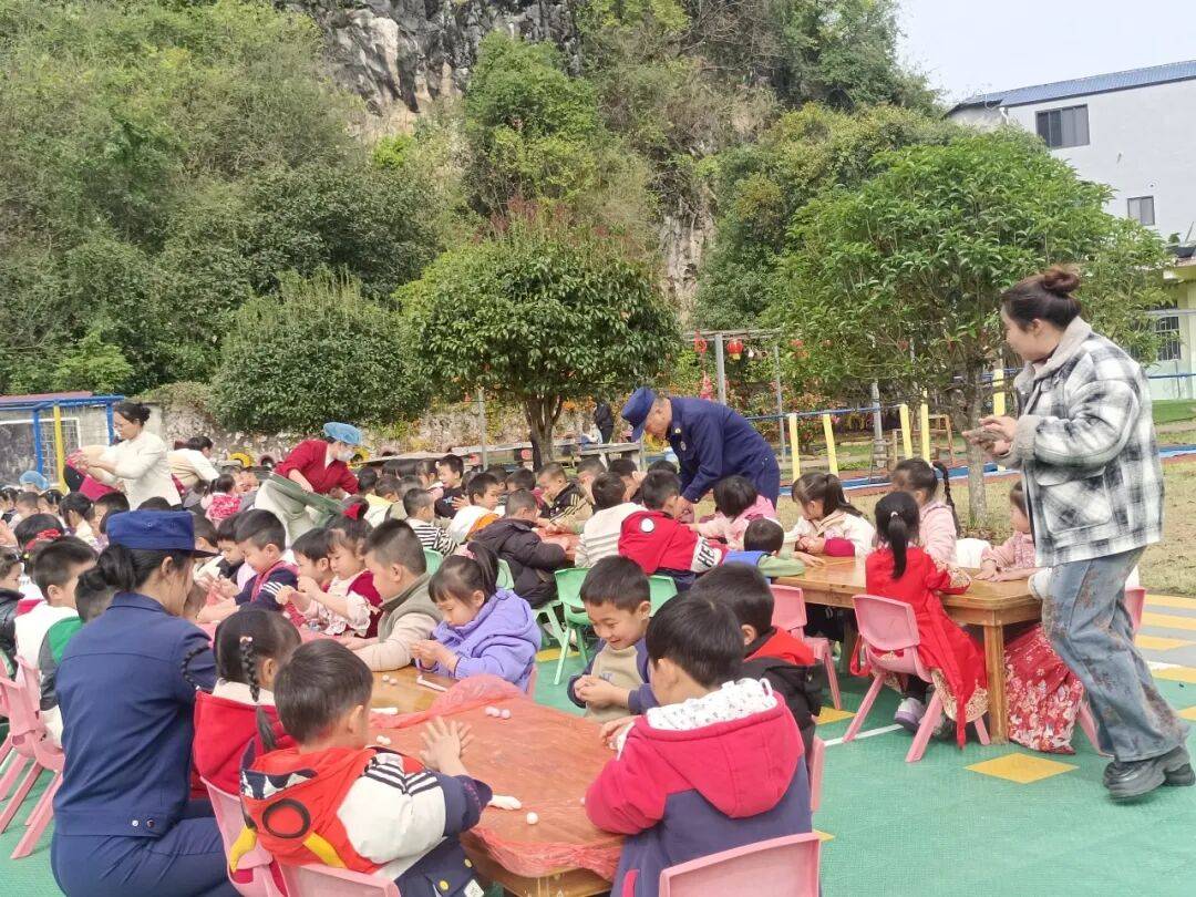 随后的儿童消防服体验环节点燃孩子们的热情,穿上“迷你消防服”的萌娃们化身小消防员,在亲身体验中近距离感受消防职业的责任与光荣。活动尾声,考虑到当日是元宵节,宣传人员与老师们、孩子们围坐一堂做汤圆。大家一边搓汤圆,一边重温消防小知识,让安全理念在节日氛围中进一步传递。