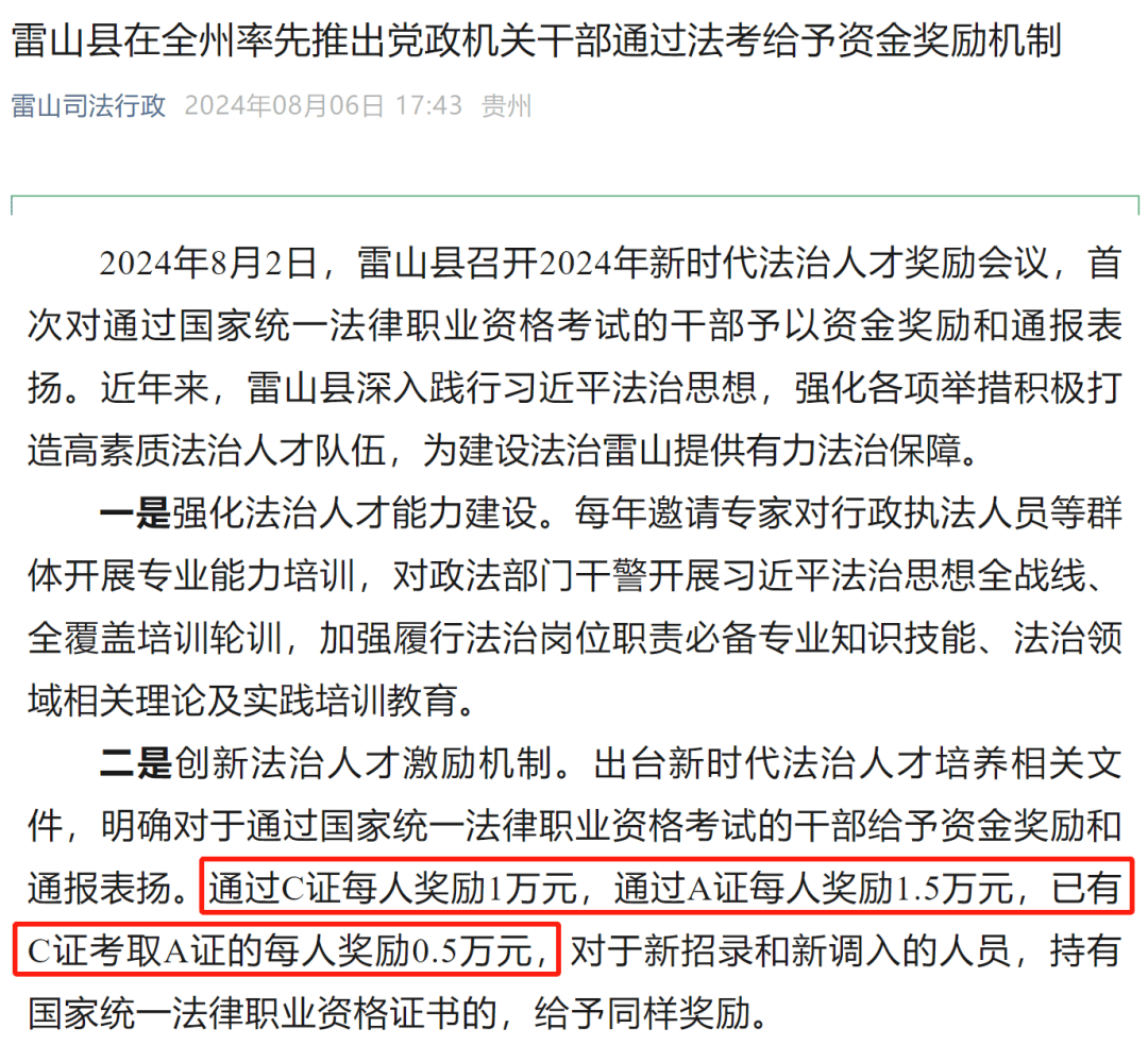 部分地区推出了法治人才激励机制,不仅有现金奖励,还有晋升机会,法考过儿们记得及时查看自己所在地区的福利哦~