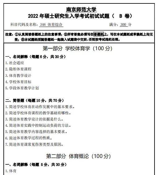 2012-2017,2023-2026年南京师范大学346体育综合考研真题参考答案【没有18-22年答案】