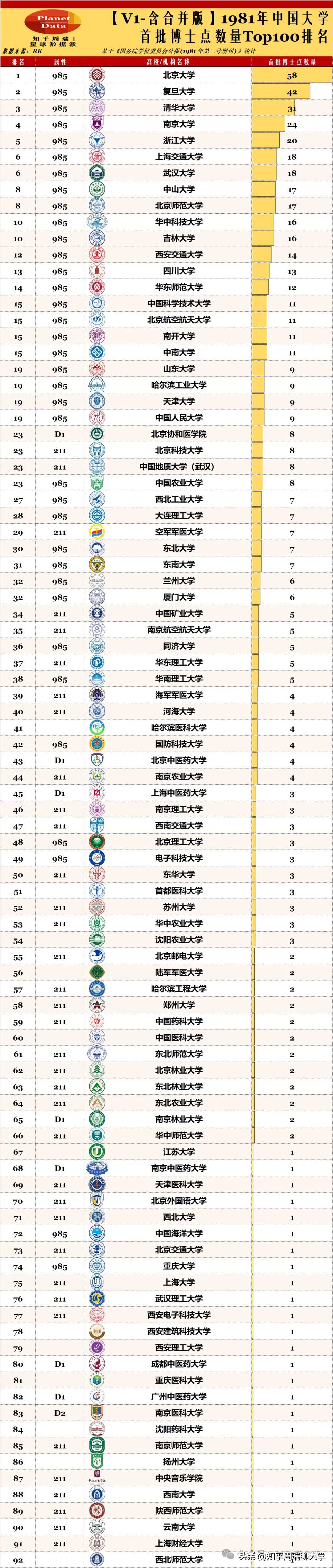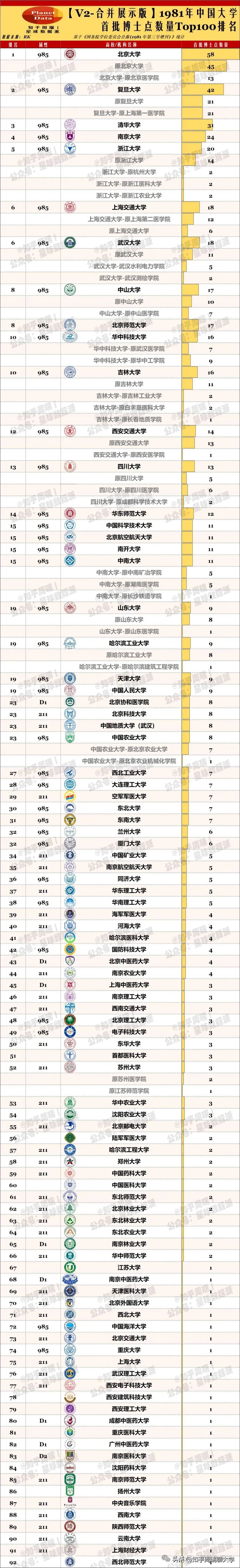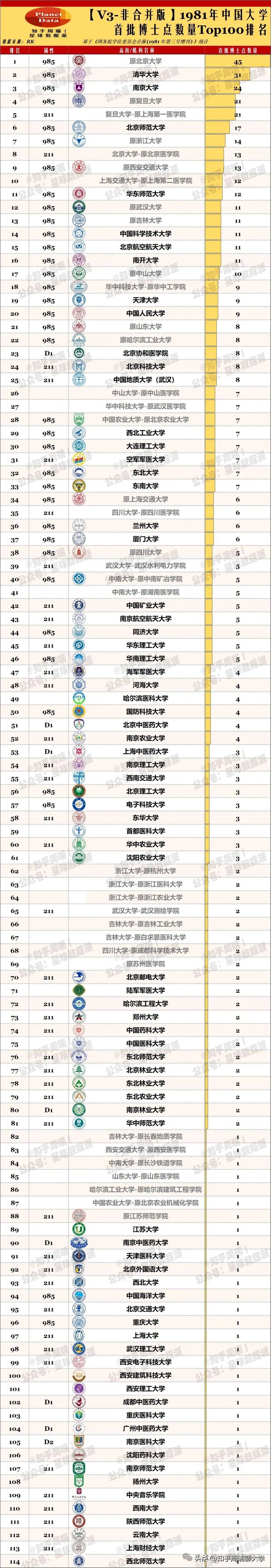 更重要的是,博士点的变迁折射出中国高等教育的 “均衡化趋势”。1981 年,博士点高度集中在京沪苏浙等东部地区;而 2025 年,川大、重大等西部高校,郑大、山大等中部高校,都在博士点榜单中占据重要位置。这种区域分布的变化,是国家区域协调发展战略在高等教育领域的落地,也是中国学术实力 “从东部独秀到多点开花” 的真实写照。