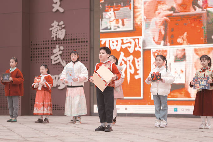 典礼上,各年级依次展示了丰富多彩的寒假实践成果:一年级用镜头与舞蹈记录幸福,二年级集福、手账、韵律操尽显多才多艺,三年级带来创意“马”元素文创作品,四年级分享AI探索体验,五年级以笔墨寻味非遗,六年级化身家乡风俗推广小博主。一份份创意十足的实践作业,展现了同学们充实有趣的假期生活与全面发展的精神风貌。