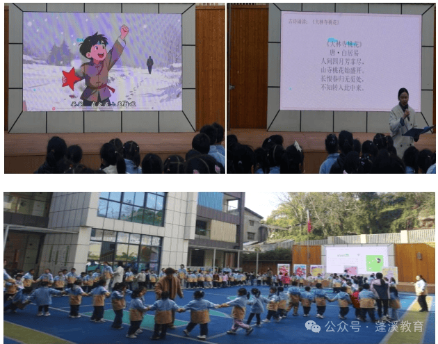 “投!花开祝福”——孩子们手持花卡,瞄准花板,手眼协调大挑战;“贴!以花缀春”——小小手儿贴出春日画卷,集体签到创意十足;“领!花礼相随”——把新学期的“花运”带回家。桃花古诗诵读、红色故事《闪闪的红星》、互动游戏……童真笑语洒满校园每个角落。