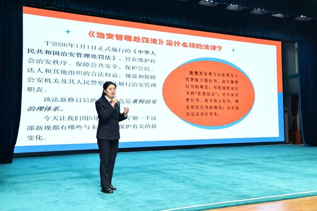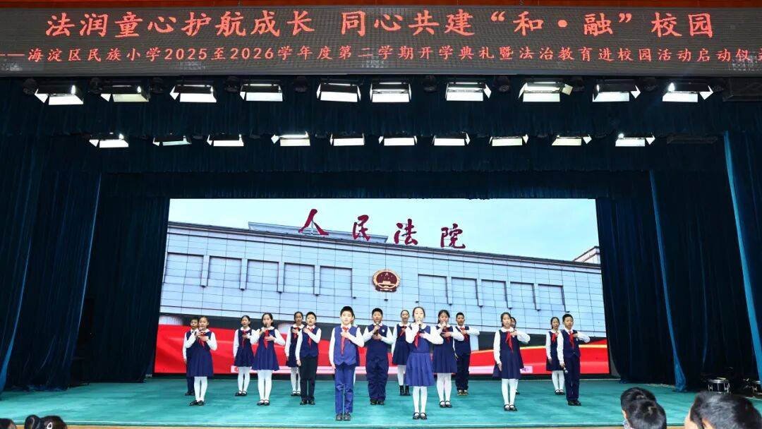 活动紧扣新修订《中华人民共和国治安管理处罚法》施行契机,将法治教育与传统文化深度融合:海淀法院综合审判庭副庭长黄杨带来“开学法治第一课”,深入解读法律修订要点,丁凤良为黄庭长颁发“法治教育特聘专家”聘书,正式启动校园法治教育系列活动;法治社团学生组成“校园普法团”分享学法感悟,鸣晓京剧社团演绎《铡美案》选段,以传统艺术弘扬公平正义;学生表演相声《说“法”》和组合节目《同在法治蓝天下》,寓教于乐传递美好愿景。