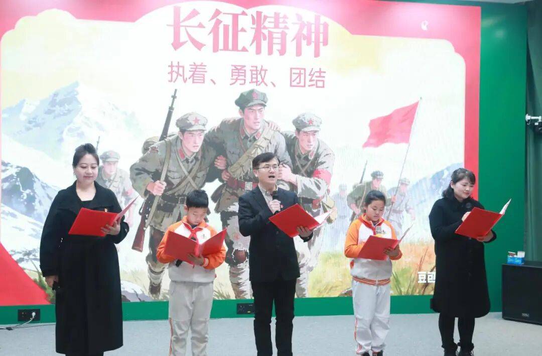 学校精心设置了“重走长征路”主题活动体验区,学生们积极参与,在游戏中体会长征的艰辛与智慧,感悟不畏艰难、勇毅前行的精神力量。全体师生共同回顾“十四五”时期国家的辉煌成就与校园成长的点滴。党员教师、团员教师与学生代表深情演绎《新长征组诗》,带领大家重温长征岁月,感悟信仰力量。各年级召开主题班会,传承长征精神,感悟红色信仰。