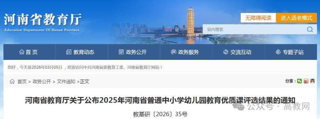 根据《河南省教育厅关于开展2025—2030年河南省普通中小学幼儿园教育优质课评选活动的通知》(教基研〔2025〕135号)文件精神,2025年在各地(校)申报的基础上,省教育厅组织开展了中学语文、中学历史、中学地理、初中信息科技、普通高中信息技术、普通高中通用技术、中小学心理健康教育、中小学美术、中小学体育与健康、中小学劳动、中小学书法教育、幼儿园教育、特殊教育等13个学科(领域)的优质课评选活动。经过省级材料评选和现场评选两个阶段,学科专家评选委员会严格按照评选标准、程序,共评选出省级一等奖773名,二等奖1129名。评选结果报河南省普通中小学幼儿园教育优质课评选活动领导小组审定后,经公示程序,现予以公布(详见附件,名单以地市和参评教师姓氏首字母排序)。