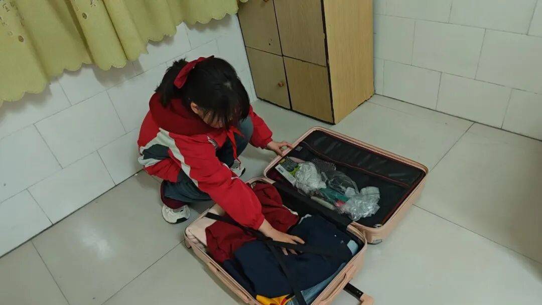 在宿舍区,班主任和生活老师带领学生安全检查员,以“见证者”的身份引导学生自行打开行李。“来,请你介绍一下自己带了什么。”学生一边翻看行李,一边向老师讲述物品用途。对于极少数携带零食或玩具的学生,老师温和地说明规定,并提供暂存服务,承诺离校时归还。