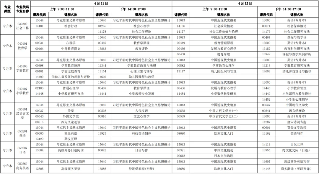 (2026年起仅调整专业代码、专业名称,暂不调整专业考试计划专业)