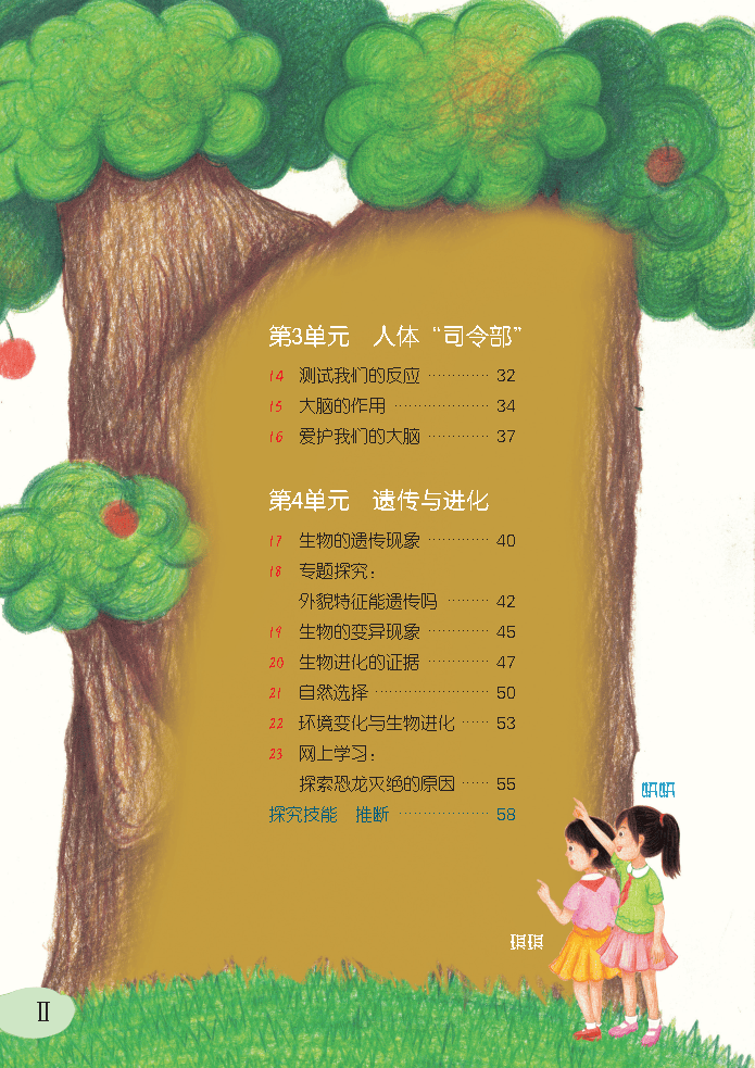 六年级是小学科学学习的收官阶段,更是衔接初中理化生知识的关键过渡期,2026秋粤教科技版六年级科学上册新教材,紧扣2022版义务教育科学课程标准,延续“探中学、做中学”的核心理念,编排4大单元、20余节课,知识点兼具系统性、探究性和衔接性,难度贴合六年级孩子抽象逻辑思维成熟的认知特点,侧重培养实验设计、逻辑推理、综合应用和知识整合能力,电子版教材高清可打印,方便孩子预习、复习,助力家长高效辅导、老师精准备课,为初中科学学习筑牢基础。全单元核心知识点精准拆解,结合实验细节与考点,通俗易懂且实用性强:第一单元《光》,核心探究光的传播与应用,引导孩子认识光在同种均匀介质中沿直线传播,通过小孔成像、皮影戏等实验理解其原理,掌握光的反射规律,了解平面镜成像“等大、等距、左右相反、虚像”的特点,学会制作简易潜望镜,区分自然光源与人造光源,明白月光不是光源(仅反射太阳光),探究光的色散现象,知道白光是由多种色光组成,同时掌握保护视力的科学方法,适配初中光学基础知识点衔接。第二单元《机械好帮手》,围绕简单机械展开,重点学习杠杆、轮轴、滑轮、斜面四大类机械,认识杠杆的支点、动力点、阻力点三要素及平衡条件,能区分省力杠杆(开瓶器、羊角锤)、费力杠杆(镊子、筷子)和等臂杠杆(天平),了解轮轴(门把手、方向盘)、滑轮(定滑轮改变方向、动滑轮省力)的工作原理,知道斜面坡度越小越省力,螺丝钉的螺纹是斜面的变形,动手制作简单机械模型,培养工程设计与动手能力。第三单元《人体“司令部”》,解析神经系统的组成与功能,知道大脑是人体的高级神经中枢,控制感觉、语言、运动、记忆等活动,了解脑、脊髓、神经的协同作用,掌握神经信号“刺激→感受器→传入神经→神经中枢→传出神经→效应器”的传导路径,通过尺子下落抓握实验测量反应时,探究影响反应时的因素,学会保护大脑和神经系统的科学方法,建立健康生活意识。第四单元《遗传与进化》,探讨生命的延续与演变,区分遗传(子代与父代相似,如单双眼皮、酒窝)与变异(子代与父代差异,如身高、肤色)现象,了解达尔文自然选择学说的核心的要点,认识化石的作用(证明生物演化、大陆漂移),知道恐龙灭绝的主流假说,探究生物适应环境的特征,培养尊重自然、热爱生命的意识,衔接初中生物遗传变异基础知识点。整套教材每节课都配套探究实验、观察记录和实践任务,兼顾知识传递、能力培养和初高中衔接,适配六年级科学收官进阶的核心需求。